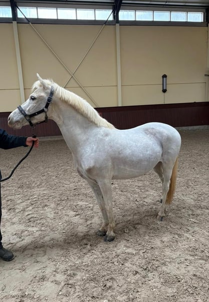 For sale on behalf of the Welsh Pony gelding Éclair, born in 2019, with a height of approximately 1.28 m. This handsome grey pony is sired by JACK DE SILLY and impresses not only with his attractive appearance but also with his versatile training and friendly temperament. Éclair is a true all-round pony and is successfully used in dressage, jumping, cross-country, and mounted games. His international success in mounted games is especially noteworthy, where he consistently demonstrates motivation and performance readiness. In daily handling, he is very easy-going, shoe- and loading-safe, currently barefoot, and housed in a paddock box with daily turnout, which he knows well and accepts without issues. He can be ridden both with and without a saddle. Éclair is fully manageable by children, both in handling and under saddle, making him an ideal children's or family pony. He is also accustomed to being ridden with side reins and remains calm and reliable in such situations. Thanks to his good strength, he can carry quite a bit, making him suitable not only for children but also for teenagers or smaller adults, which also makes him an excellent mother-daughter or family pony. A versatile, sporty pony with an excellent character that will bring great joy to his new rider.