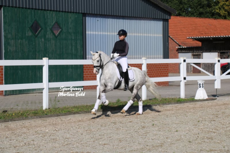 gültiger FEI-Pass vorhanden v. Goldencoast Eros x Jedidjan Johannes Mit „North Finn Flame“ aka Lasse haben wir ein absolutes Traumpony. „Lasse“ vereint ein Sportlerherz und ein Herz für Spiel und Spaß. Zudem ist er einfach nur traumhaft schön und super lieb. Kurz um „Lasse“ ist ein absolutes Herzenspony! Auch wenn „Lasse“ masstechnisch eher klein gewachsen ist, deckt er problemlos größere Reiter ab. Unter dem Sattel macht er sich sehr groß, so dass kaum ein Unterschied zu manch einem Endmasspony zu erkennen ist. „Lasse“ ist sehr fein ausgebildet, so dass auch kleinere Kinder, sowie unerfahrene Reiter sehr schnell von ihm und seiner Routine profitieren und lernen können. Er ist absolut lektionssicher und leichtrittig. Mit seiner bisherigen Reiterin, die nun dem Ponyalter entwachsen ist, konnte „Lasse“ zahlreiche Siegen und Platzierungen in FEI-Prüfungen für sich verbuchen. Zu ihren größten Erfolgen zählten in diesem Jahr die Bronzemedaille bei finnischen Meisterschaften! Neben der Arbeit im Viereck liebt „Lasse“ lange Ausritte ins Gelände; egal ob es dunkel oder hell ist oder ob sehr viel Schnee gefallen ist, der Wallach genießt es und passt immer auf seinen Reiter auf. Zudem zeigt sich „Lasse“ bei den gelegentlichen Springeinheiten sehr geschickt am Sprung. Wer ein absolutes Traumpony mit Schleifengarantie sucht, sollte sich „Lasse“ nicht entgehen lassen. Ein röntgonologischer Tüv liegt vor. https://youtu.be/yAQQA_8sunw?si=8eKhHA3LTBJnfM0N Bei ernsthaftem Interesse melden Sie sich gerne telefonisch unter der +491707941333.