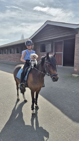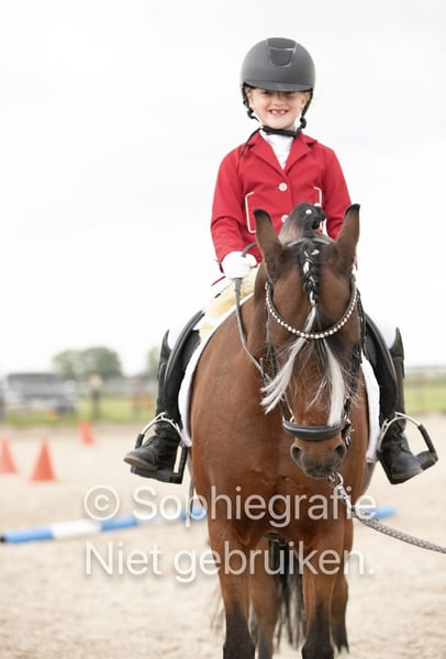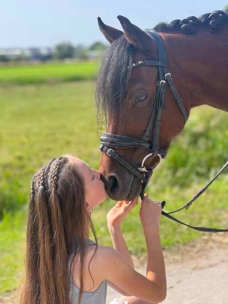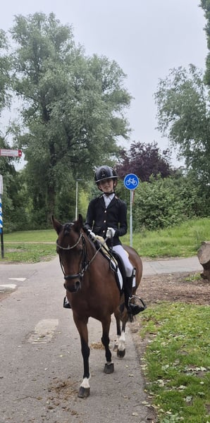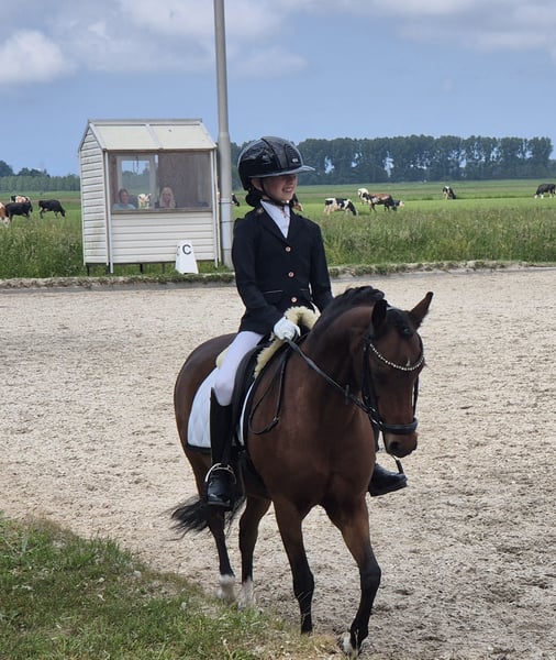 Super lieve welsh sportpony Merrie Haar naam is. Rosedale fairy consort (fay) Fay is 15jaar oud en heeft een Stokmaat van 126,9 cm dus valt nog in de B maat. Fay is een super lieve voorwaartse pony die niet snel onder de indruk is en heeft nog nooit een stap verkeerd gezet. Fay is uitgebracht is de dressuursport M1 en beheerst alle oefeningen, fay kan ook goed springen alleen is nooit uitgebracht Ook ervaring in de bixie. Ze is een lieve pony in omgang poetsen, wassen of gewoon lekker wandelen geen probleem ze kan ook prima buiten staan met anderen pony's. Ondanks dat fay een voorwaartse pony is kan je prima met haar op buitenrit en geniet ze ook heel erg van. Voor Fay is enige rijervaring wel belangrijk of de juiste begeleiding om dat het een echte voorwaartse sportpony is. Denk jij dat je de juiste ruiter bent voor fay neem gerust contact op en kom haar gerust uitproberen