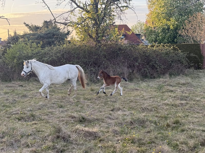 Verkaufsanzeige: Pony-Stute Ziva mit Stutfohlen Zum Verkauf steht meine liebe 3-jährige Pony-Stute Ziva mit ihrem bezaubernden Stutfohlen, geboren am 25.04.2026. Ziva ist ca. 1,25 m groß und überzeugt durch ihr freundliches Wesen sowie ihren ausgeglichenen Charakter. Sie ist im Umgang brav und dem Menschen zugewandt – eine tolle Basis für weiteres Training oder als zukünftiges Familienpony. Daten zu Ziva: - 3 Jahre alt - ca. 1,25 m Stockmaß - Equidenpass vorhanden - regelmäßig geimpft und entwurmt - Zähne zuletzt im August 2025 gemacht Ihr Fohlen ist gesund, munter und entwickelt sich altersgerecht. Es wächst in einer liebevollen Umgebung auf und lernt bereits den täglichen Umgang mit Menschen kennen. Die beiden werden nur zusammen in gute, verantwortungsvolle Hände abgegeben. Sie eignen sich ideal für Ponyfreunde, Züchter oder als zukünftiges Freizeitpony mit Nachwuchs. Bei Interesse oder weiteren Fragen freue ich mich über eine Nachricht.