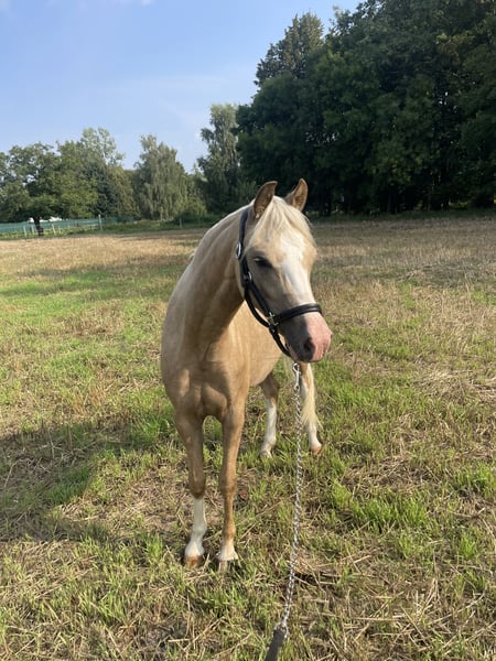 For sale: a beautiful Welsh mare! This offer features a young, promising mare born in 2023. Her striking, Isabella-colored coat highlights her exceptional appearance. Perfect for those seeking a young horse with potential for the future. Please feel free to contact me for more information.