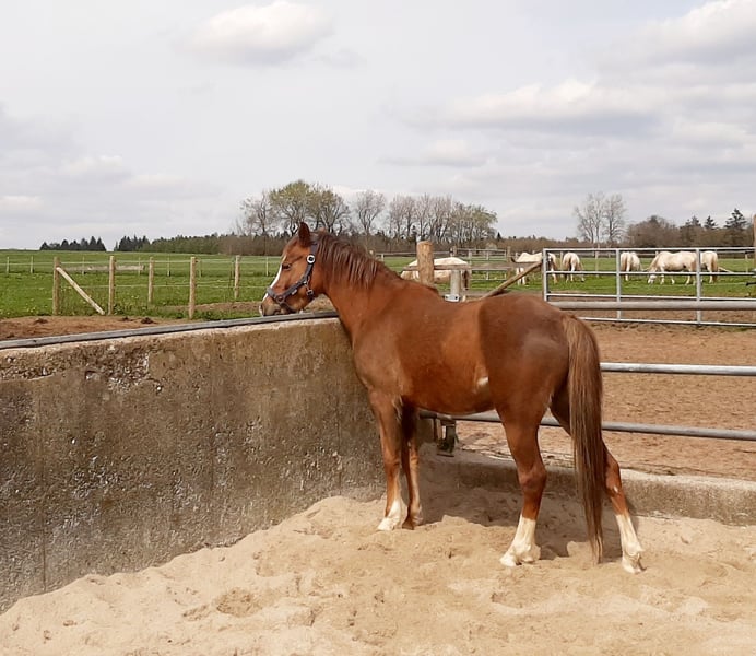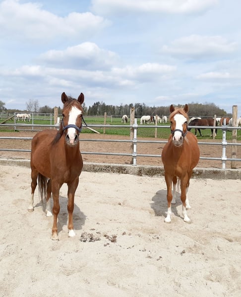 Jeanette ( Foto links) ist eine bereits rahmige Jungstute mit viel Bewegung und Rassetyp. Sie verspricht ein tolles Kindersport Pony zu werden aber auch fuer Zucht und Schau sehr gut. Ihr Abstammung spricht fuer sich. Weiter Infos per Mail oder per Telefon