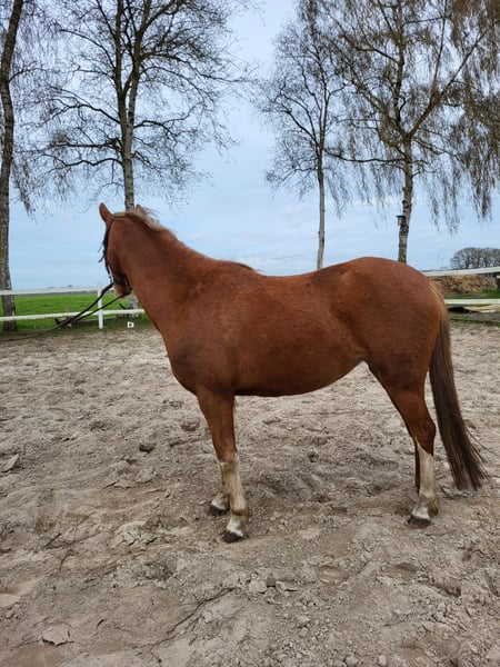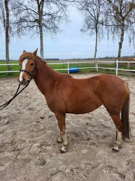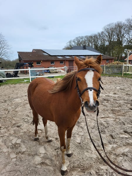 Super brave Welsh Stute zu verkaufen. Rhossyn van Bombaij (Rosi) ist ein aufgewecktes, neugieriges und arbeitswilliges Pony. Sie ist ca. 134 cm groß. Rosi ist anlongiert, und kennt Reitergewicht im Schritt. Außerdem hat sie auch schon am langen Zügel einen Reifen gezogen. Ich kann mir Rosi sowohl als Reitpony als auch vor der Kutsche gut vorstellen. Rosi ist unerschrocken und absolut klar im Kopf. Sie kennt, Hunde, Trecker und ist gut herdenverträglich. Sie kennt Spazierengehen auch alleine. (geht also auch gut von der Herde weg) Sie ist menschenbezogen, aber nicht auf bestimmte Personen fixiert. Rosi hat gute Papiere und wäre auch für die Zucht gut geeignet. Vater = Byley Aragron Vater/Vater = Hilin Tattoo Mutter/Vater = Wheemhoeve´s Marko Wir haben Rosi vor vier Jahren als Beisteller für ein eigenes Fohlen in Holland gekauft. Jetzt haben wir leider keine Aufgabe für Rosi und sie ist bereit für weitere Lektionen. Deshalb geben wir sie jetzt ab. Wir wünschen uns für Rosi ein super neues zu Hause mit neuen Aufgaben (reiten, fahren...?) oder jemanden der mit ihr züchten möchte. Platz vor Preis! (aber verschenkt wird sie nicht!! ;-) ) kein Notverkauf! Bei Interesse gerne melden, dann kann ich auch noch mit Videos dienen. Gruß Hartmut Hölter 0162-3630036