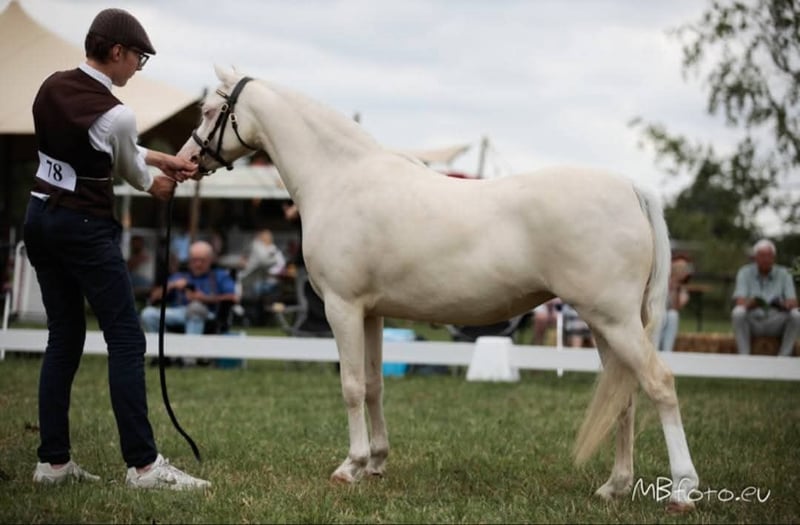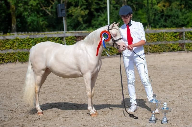 ✨ The ultimate children's pony with an exceptional temperament and a unique appearance ✨ We are proud to offer this exceptionally sweet and eye-catching pony. A true head-turner thanks to her distinctive color, combined with a temperament you can only dream of. Heathpark Philomena aka Flipje😍 Pedigree: Cadlanvalley Georgie Boy x Waxwing Matinee by Eyarth Beau Geste This is a very interesting lineage, making her also highly suitable for breeding a foal! Height: 125 cm This pony has already proven herself in the arena: 🏆 Dutch Young Pony Champion 🏆 Multiple champion ribbons in the young pony classes What truly makes her special is her outstanding character. Without a doubt, she is one of the sweetest ponies you will ever meet: 😍 Never step wrong 🤩 Extremely well-behaved and reliable 👀 Very suitable for the smallest riders She is the perfect first pony for children who want to start dressage and/or jumping. A true learning pony that builds confidence and puts fun first! Additionally, her striking color makes her extra unique and a real eye-catcher, both at competitions and at home. 🔹 Flipje falls into a higher price range 🔹 Worldwide transport can be organized professionally (extensive network and experience) 🔹 She currently has a beautiful foal and will be available from summer A unique opportunity for those seeking a combination of character, appearance, and quality. 📩 Serious inquiries? Feel free to contact us!