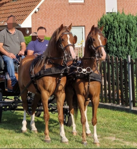 „Hallo, liebe Liebhaber von Welsh-Ponys! Ich biete ein ganz besonderes Welsh-Pony zum Verkauf an. Es ist ein Wallach mit einem Stockmaß von etwa 1,38 bis 1,39 Metern und stammt aus einer hervorragenden Linie. Der Pony ist sowohl ein- als auch zweispännig fahrsicher und zeigt im Verkehr keinerlei Scheu. Er wurde zwar gelegentlich geritten, jedoch nicht vollständig ausgebildet, da ich vor allem Kutsche gefahren bin. Er ist sehr gelassen und wurde auch von Kindern geführt. Zusätzlich biete ich gegen Aufpreis ein hochwertiges einspänniges Geschirr der Marke Kieffer sowie eine besondere Pferdekutsche an, die sowohl ein- als auch zweispännig gefahren werden kann. Diese Kutsche und das Geschirr sind von deutscher Herstellung und von höchster Qualität. Bei Interesse sende ich gerne Fotos und Videos über WhatsApp zu. Ich hoffe sehr, dass er ein liebevolles Zuhause findet, da ich ihn aus gesundheitlichen Gründen abgeben muss.“