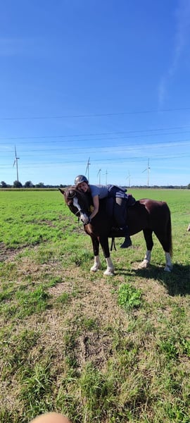 For sale is a beautiful Welsh-C gelding, born in 2013. This dark chestnut impresses with his friendly nature and versatile suitability for various disciplines. He is ideal for leisure riding and is suitable for both experienced riders and re-entrants. However, he is not yet suitable as a beginner pony. Currently, he still needs more experienced riders to bring out his best. The gelding is healthy and regularly dewormed. He is well-suited for riding in the terrain and also performs well on the arena. His pleasant demeanor makes him a reliable companion for leisure riding. He loves attention from his rider and enjoys being pampered. This horse simply has character :-). This is not a distressed sale. We are reducing our herd and have the time and interest to sell Erich into the best hands. He is not suitable (yet) as a pony for small children (unless led). Erich is also not a weight carrier, but riders up to 1.70 m and 70 kg are well covered. He can, of course, be viewed and test ridden at our facility. We would like to meet the new owners personally; a visit and trial ride are not only welcome but expected. If interested or for further information, please feel free to contact me. Viewing and test riding by appointment.