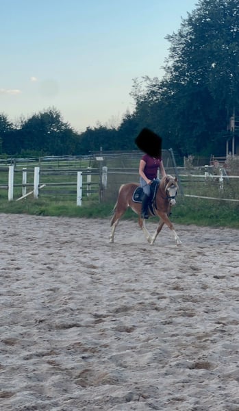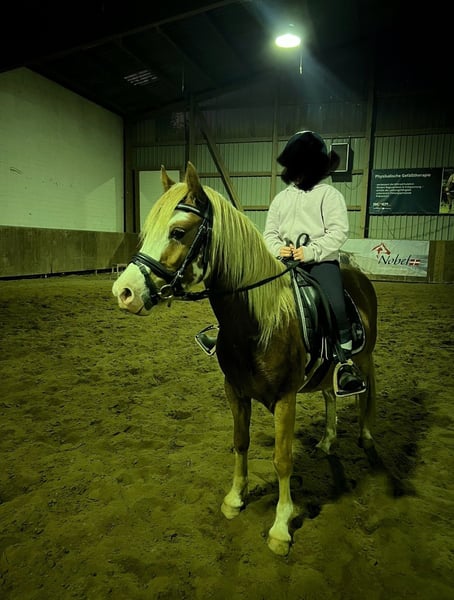 Ich verkaufe hier meinen bei mir geborenen Welsh C Wallach Zamilo. Er ist am 04.05.2022 geboren und aktuell ca 1,34 m groß. Wir reiten ihn nun seit ca 8 Wochen schonend ein. Hierbei zeigt er sich immer brav und lernwillig. Er ist eher der flottere Typ :) super weich in der Hand und am Bein. Im Gelände war er auch schon unterwegs und auch dort absolut brav. Ein kleines Cavaletti ist er auch schon gehüpft. Auch von Kindern habe ich ihn bereits reiten lassen. Ich selbst würde ihn für seine Zukunft als absolutes Schleifenpony beschreiben. Durch sein Äußeres ist er natürlich ein Hingucker. Er lebt bei mir in Offenstallhaltung. Sehr verträglich mit anderen Pferden. Spielt seinem Alter entsprechend gerne mit den anderen. Jedoch sollte einem bewusst sein, dass er noch wirklich jung ist und am Anfang seiner Ausbildung steht. Ich verkaufe ihn wirklich nur in ein top 5* zu Hause. KEIN NOTVERKAUF! Bei ernsthaften Interesse können auf Wunsch gerne Videos gesendet werden. Bei Fragen schreibt mir gerne.