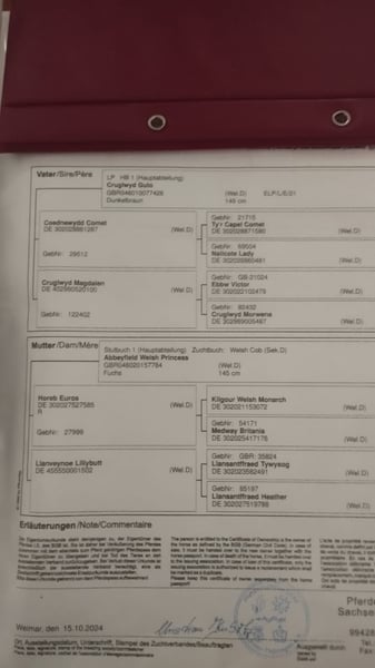 Diese außergewöhnlich schicke Welsh Cob Stute überzeugt durch Typ, Bewegung und Präsenz. Bereits als Fohlen konnte sie auf ganzer Linie begeistern: 🏆 Siegerfohlen bei der Fohlenschau 🎖️ Teilnehmerin am Fohlenchampionat Mit ihrer hervorragenden Bewegungsqualität, dem korrekten Fundament und ihrem ausdrucksstarken Auftreten ist sie für alle Sparten hochinteressant – ob als zukünftiges Reitpony für Dressur, Fahren, Show oder Zucht. Durch ihre Abstammung vereint sie bewährte Leistungsblutlinien und bringt alles mit, um sich zu einem vielseitig einsetzbaren Welsh Cob im endmaßigen Typ von ca. 1,50 m zu entwickeln. Ein echtes Nachwuchstalent mit Charme, Qualität und Perspektive!