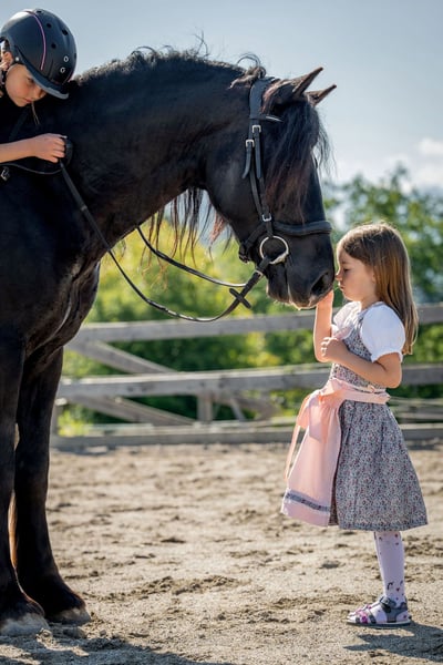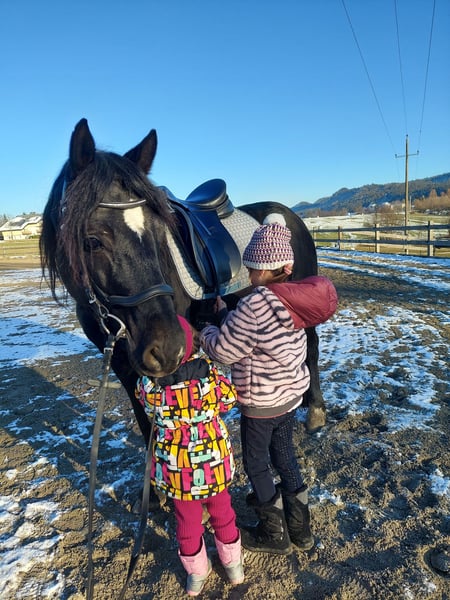 A pony with an indescribable, unique character. An absolute children's pony through and through. Registered Welsh C breeding mare with the best pedigree, 5 years old, 125 cm, covers well and carries light adults up to 55 kg (for regular corrective riding), in foal for 2026 by our licensed stallion. We are reducing our breeding mare stock and are therefore looking for a nice place for our Cady. The young mare came to us when she was 1 year old and has since been a companion to our youngest daughter. She goes out alone and in groups with children. I have so much trust in this mare that I let my 5-year-old daughter work with her completely alone, and I also take her out freely into the terrain. Absolutely fearless, traffic-safe, well-behaved, easy to load, and uncomplicated in all situations. In the riding arena, she is well-balanced in all three gaits, ridden. No vices such as bucking, rearing, biting, or striking. A life insurance and a dream for every mother. She has also participated in small riding competitions and is very well-behaved in unfamiliar surroundings. She allows children to wash her, groom her, ride her freely in the pasture, and much more. We are letting her go because she is a bit too small for our breeding, and our daughters are moving on to our larger ponies. We are also keeping the offspring from last year from this beautiful mare. Cady is solidly trained and has the best character one could wish for in a children's pony. With further training, we see a lot of potential for this mare. She particularly enjoys jumping, but we have not promoted this with her as we do not use pregnant mares in jumping sports and only do gymnastic dressage work and trail rides. Cady is also a great mother mare and would be an asset to any breeding program. Cady has a very calm temperament, with steady and calm forward movement, not a racing type. She brings a willingness to perform and always works with you. Cady does not know the meaning of "no desire." In groundwork and handling, she also shows herself to be very motivated, fine, and sensitive. She responds very well to voice commands and body language. We could take her foal back if needed. However, it will certainly also be a nice young pony, a bit larger than Cady and hopefully with even more scope in movement, as our stallion usually passes on strong traits.