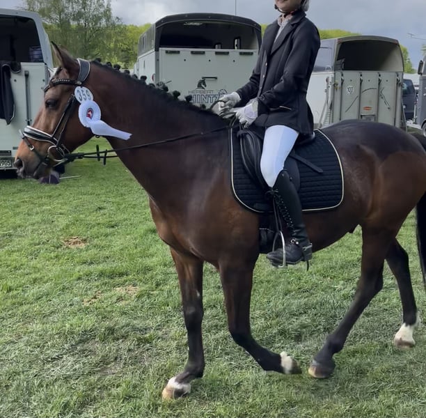Zum Verkauf steht unser bezauberndes Endmaßpony, da sich die Ponyzeit unserer Tochter dem Ende zuneigt. Unser Pony ist nicht nur ein Schleifengarant, sondern hat auch eine sehr liebevolle und geduldige Persönlichkeit. Er ist perfekt für Kinder, die Reit-Erfahrungen sammeln oder sich weiterentwickeln möchten. Im letzten Jahr hat unsere Tochter das RA 5 erfolgreich mit ihm absolviert. Das Pony ist in den meisten Situation entspannt, sei es beim Reiten, im Stall oder beim Verladen, so dass es ihn zu einem idealen Partner für junge Reiter macht. Außerdem ist er sehr brav im Umgang und lässt sich leicht führen und händeln. Natürlich kommt auch mal sein Pony- typischer, Dickkopf durch, ist aber nie böse dabei. Die Teilnahme an verschiedenen Reiterwettbewerben hat nicht nur für viel Freude gesorgt, sondern auch für wertvolle Erfahrungen, die unsere Tochter mit ihrem Pony sammeln konnte. Das Pony hat eine hohe Lernbereitschaft und zeigt sich stets kooperativ. Wir legen großen Wert auf eine artgerechte Haltung, weshalb das Pony bei uns im Offenstall lebt. Es ist sozialverträglich und hat sich gut in die Herde integriert. Wir wünschen uns künftig eine ähnliche Haltung.