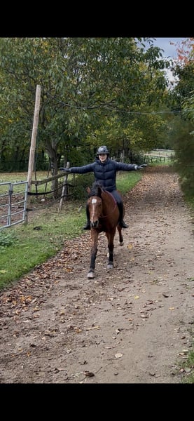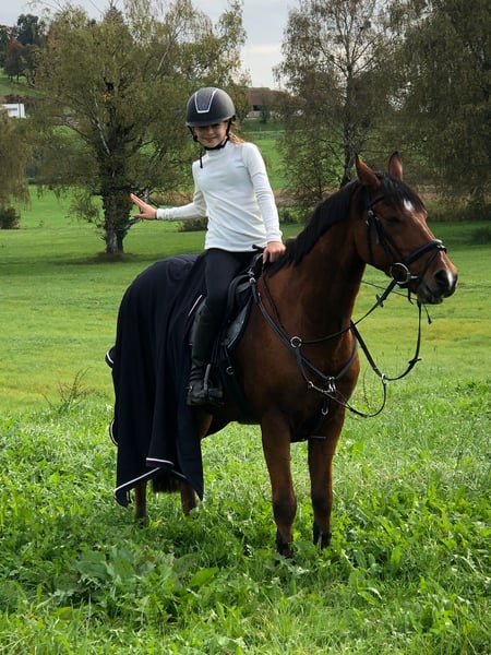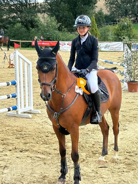 Our Giovanni is a true treasure on four legs – patient, charming, and always eager to do his best for his rider. He gently introduced our daughter to the world of riding and has given her countless wonderful moments, including winning the title of State Champion in show jumping. Having recovered from an injury, we are now looking for a loving home where he no longer needs to compete. He is trained up to L-level in dressage and also capable in jumping up to L, making him perfect for children or small teenagers who want to learn to ride confidently and with joy. Giovanni is well-behaved in handling, reliable in all situations, and a true teacher – whether in the arena, out in the field, or at small E-level show jumping (occasional WBOs are completely fine). We wish for him a home where happiness, love, and trust come first – no pressure to perform, no competition stress, just a happy pony life filled with children's laughter. Price: significantly reduced due to his previous injury – available only to caring and loving owners.