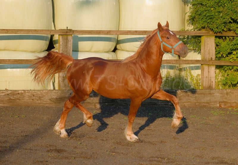 Wir bieten einen wunderschönen Welsh-D Wallach aus eigener Zucht (Geburtsjahr 2021, z.Zt. 150 cm Stm.) zum Verkauf an. Dieser beeindruckende Fuchs besticht nicht nur durch seine elegante Erscheinung, sondern auch durch sein freundliches Wesen und seine vielseitige Eignung als Freizeitpferd. Dieser junge Wallach wird voraussichtlich der ideale Begleiter für alle, die ein zuverlässiges und gutmütiges Pferd für entspannte Ausritte und Freizeitaktivitäten in Zukunft suchen. Er zeigt sich lernwillig und kooperativ und ist bereit, mit seinem neuen Besitzer viele schöne Stunden zu verbringen. Durch sein eher sportlich elegantes Exterieur würde er sich auch für unterschiedliche Sportdisziplinen eignen wie Dressur, Springen oder Fahren. Wenn Sie auf der Suche nach einem treuen Partner für Ihre Freizeit sind, der durch seine elegante Ausstrahlung und sein enormes Bewegungspotenzial überzeugt, dann könnte dieser Welsh-D Wallach genau der Richtige für Sie sein. Bei Interesse oder weiteren Fragen freuen wir uns auf Ihre Kontaktaufnahme!
