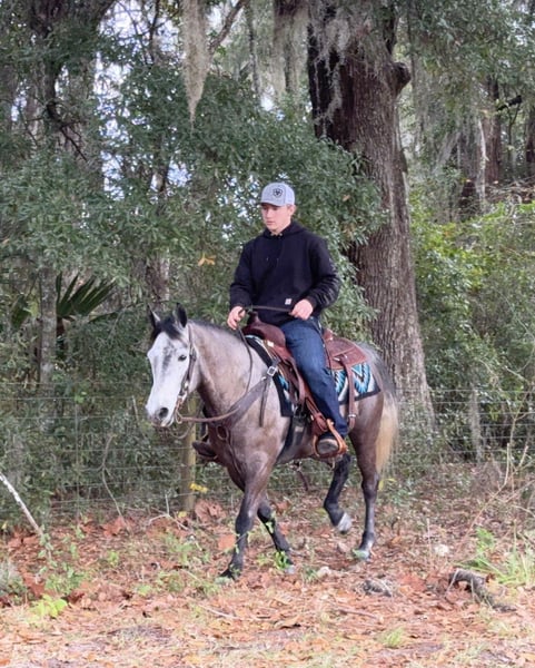 𝐉𝐀𝐍𝐔𝐀𝐑𝐘 ⭐️𝑨𝒍𝒍 𝑺𝒕𝒂𝒓 𝑳𝒊𝒏𝒆𝒖𝒑⭐️ Happening now thru MONDAY | JANUARY 26th - Available EXCLUSIVELY on HorseBid's website! For more details and to register visit: www.Horsebid.com CONSIGNOR CONTACT: Helmuth Equine 515-460-9191 LOCATION: Ames, IA BREED: Welsh/Quarter Pony Cross REGISTERED: No REGISTERED NAME: Steel COLOR: Gray HEIGHT: 13.2 AGE: 6 GENDER: Gelding Steel is an eye-catching Welsh Quarter Pony, broke to ride and well suited for the hunter/jumper ring, where he truly shines. He is a forward-thinking ride with no buck, rear, or bolt that enjoys his job and jumps with scope and enthusiasm, making him an excellent step-up pony for a rider ready to be competitive. This pony has a kind, willing personality and excellent ground manners. He is very sweet to handle and settles easily into new environments. He stands tied patiently anywhere, loads/unloads/hauls well in any type of trailer. He’s sound, up to date on all vaccinations/dental, and has great feet! Steel is an easy keeper, lives happily in a stall or turned out with any herd of horses. He has extensive off-property experience, having been ridden everywhere from snow drifts and trails in Iowa to the cross country courses and beaches of Florida, and takes new places confidently. Steel is an athletic pony that would also make a dependable working ranch pony and could easily excel in any discipline that requires stamina and a strong work ethic. He has been ridden English, western , bareback, double and is also broke to drive. He rides well in a snaffle bit on contact or a shanked bit on a loose rein. He has experience in all types of terrain down the trails. He is fun to ride anywhere as he is brave and confident down the trails. Ride him out alone or in a group of any size. He’s strong enough to carry most any size rider. He has the movement, brain, and jump to succeed in the hunter or jumper disciplines and would also be a fantastic Pony Club mount for a motivated rider. He turns heads wherever he goes with his beautiful dapple gray coat and polished presence.
