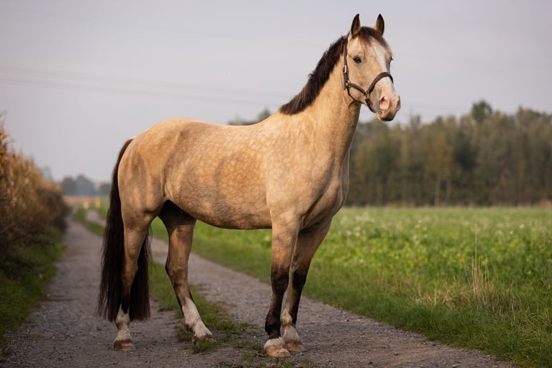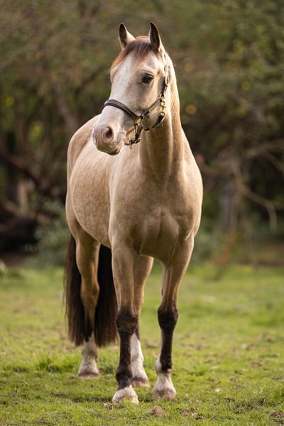 Schweren Herzens biete ich meinen unkomplizierten und tollen Welsh Cob Wallach an. Rasse: Welsh D Farbe: Golden Dun/ Goldfalbe Geburtsjahr: 2019 Größe: 1,46 Arvalon Monteverdi ist jungpferdegerecht und unverbraucht auf dem Gestüt Arvalon an der Ostsee/ Damlos aufgewachsen. Im Jahr 2022 kam er mit 3,5 Jahren zu mir und ist seitdem ein treuer Freund mit perfekter Arbeitseinstellung. "Fred" hat einen gutmütigen, ehrlichen und arbeitsfreudigen Charakter. Er ist der ideale Begleiter für alle, die ein zuverlässiges und umkompliziertes Pferd suchen - egal ob als Freund im Alltag oder als sportlichen Partner. Er ist einerseits ausgeglichen und kopfklar jedoch gleichermaßem leicht für jede Art der Arbeit oder Abwechslung zu begeistern. Fred ist super motiviert und typsich "Welsh-Schlau" in jeder Art der Boden- oder Freiarbeit (Longe, Doppellonge, Erlernen von Tricks, Gelassenheitstraining, freies Arbeiten, …) Außerdem ist er stets bemüht alles richtig zu machen, sensibel und orientiert an „seinen“ Menschen. Er geht gerne und entspannt (auch alleine, bisher an der Hand) ins Gelände, lässt sich draußen auf dem Reitplatz genau wie in der Reithalle, von äußeren Eindrücken unbeeindruckt, arbeiten. Wir haben ihn sehr sorgfältig, schonend und immer mit Blick auf das Wohl des jungen Pferdes angeritten. Er zeigt sich auch hier motiviert und hat Potential der perfekte Partner für den ambitionierten Freizeitreiter aber auch für den sportlichen Bereich zu werden. Da sein Ausbildungsstand bisher "angeritten" ist, ist er reittechnisch nicht an Anfänger abzugeben und bedarf hier noch weiterer Ausbildung. Er ist immer top gesund und wird regelmässig dem Schmied vorgestellt (barhuf), entwurmt, geimpft. Die Zähne werden durch einen Tierarzt kontrolliert und bearbeitet. Er steht aktuell in einer Paddockbox mit zusätzlich 10-12 Stunden täglich Wiese/Paddock mit Artgenossen. Ich gebe ihn lediglich aufgrund meiner Schwangerschaft und drohendem Zeitmangel ab und wünsche mir für ihn einen privaten, liebevollen Platz mit genug Auslauf, wo er wieder die Nummer 1 sein darf. Gerne kann ich noch viel mehr über dieses tolle Pony erzählen und jede Nachfrage beantworten. Gerne telefonisch oder per WhatsApp 01511 4433939 Standort: Gelsenkirchen