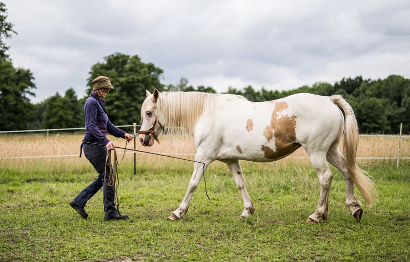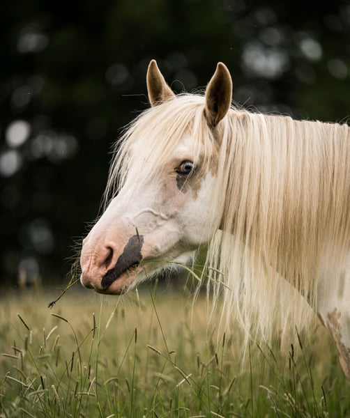 Cleo is a Welsh Cob x English Warmblood (with equine passport), born in Wales in July 2014. She stands approximately 15.3 hands and was imported as a foal in June 2021, arriving in my care shortly thereafter. She is very healthy, robust, and has a strong build. Since she arrived somewhat wild and unhandled, I dedicated a lot of time to building trust and working on groundwork, incorporating elements of classical dressage, horsemanship, clicker training, and solid basic education. Loading into the trailer and hoof care (barefoot) are no problem. She is well-behaved as a lead horse, both on foot and when accompanied by a bicycle, and is not spooky. She remains calmly tied when the halter is on the ground. In autumn 2022, she was saddle-trained and was regularly ridden in the field until August 2023. Cleo is very friendly, especially with children, shy, and attentive to nervous or needy individuals. She forms a close bond with her primary handler, from whom she gains a great sense of security. Within her herd, she is lower in rank and very social. Due to a strong pain response during riding, X-rays were taken, revealing kissing spines. She was ridden with good training, but I do not intend to rehome her as a riding horse, nor as a companion horse. She is a wonderful mare that deserves a meaningful task. She has great potential for therapeutic work, as she is very expressive, curious, and cautious in her interactions. She is also ideal for classical dressage, cavalletti, and other disciplines requiring fine communication—she is a dream in these areas. With her flowing mane, two-colored eyes, and beautiful head, she exudes an ethereal beauty that captivates people. Her delicate appearance and gentle nature especially appeal to children, inspiring trust and affection. I will only consider rehoming Cleo if I find the truly suitable person. Experience in horse training, horse-friendly management, and handling are essential. Preference is given to someone who can offer her a role in therapy or education and provide her with the recognition she deserves.