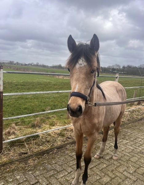 Mexy Nova RSP, Welsh Born on May 15, 2025. A mare foal by Dallmayr K out of Vogelenzang’s Nienke (by Orchard Boginov). She is a strong, sweet, attractive buckskin filly, expected to mature into a D pony. Her mother, Vogelenzang’s Nienke, has produced several approved stallions and excellent sport ponies. Mexy has a lot of potential for movement, is handled daily, and is correct in conformation. She also enjoys grooming and loves attention. Absolutely worth considering as a children's sport pony or breeding mare. Feel free to send a message if you have any questions (: