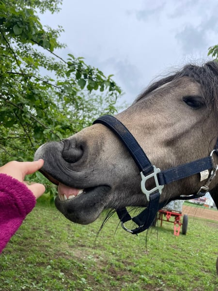 Nasza kochana, inteligentna i przyjazna ludziom klacz Welsh Cob "Neffrity Ryan" szuka dobrego domu. Ryan ma 4 lata, pochodzi od Mischel Frodo x Topas, zawsze stara się robić wszystko poprawnie i jest prawdziwą pięknością! Ryan (wysokość 145 cm) jest obecnie w trakcie podstawowego szkolenia i z dużą miłością oraz cierpliwością wprowadzana jest w świat jeździecki. Kuce zna cały ruch uliczny i jest niezwykle grzeczna w każdej nowej sytuacji. Dodatkowo jest zaznajomiona zarówno z pracą na ujeżdżalni, jazdą w terenie, lonżą, spacerami w terenie, jak i innymi formami treningu. Nasza dziewczynka jest delikatnie wprowadzana do jazdy pod siodłem i stopniowo oswajana z różnymi elementami. Życzylibyśmy sobie dla Ryan jak najlepszego domu i oddamy ją tylko w najlepsze ręce! W razie pytań prosimy o kontakt pod numerem 01776853138 – chętnie odpowiemy na wszystkie pytania.