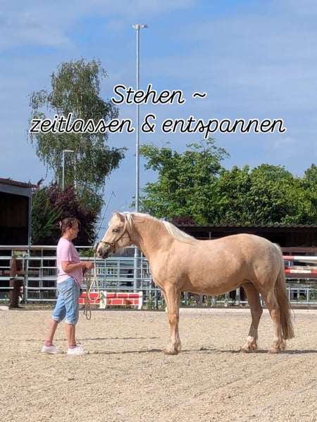 Unsere Enfys ist ein richtiger Schatz, sie ist eine gut gelungene Stute um 147m/148m Stm. in schickem blonden Palomino. Enfys heißt übersetzt Regenbogen. Ihr Vater ist der bekannte Stempelhengst Danaway Flashback und ihr Mutter die leistungsstarke Treidelhof Anwen. Sie ist begeisternd menschenbezogen und will bei allem gefallen. Sie ist immer mit Interesse und Lernwillen dabei. Sie kommt im Galopp, wenn wir sie zum Training rufen, sie liebt es. Wir sind gerade in der Anreitphase und gewöhnen sie Schritt für Schritt an die Abläufe. Enfys ist ein Schätzchen, sie begreift schnell und ist mit Engagement dabei. Immer sehr gut kontrollierbar. Im April haben wir sie für die Stutenleistungsprüfung angemeldet, sie wäre auch eine hervorragende Zuchtstute. In der Herde ist sie angepasst und sehr umgänglich. Für Enfys, wie für alle unsere Pferde, wünschen wir uns in erster Linie einen lieben Menschen mit Verantwortungsbewusstsein, der mit sich und dem Pferd sorgsam und geduldig umgeht. Unsere Pferde sind völlig unverdorben und haben nur gute Erfahrungen gemacht. Enfys ist Influenza, Tetanus und West Nil geimpft und wird 4x im Jahr entwurmt. Sie war stets gesund.