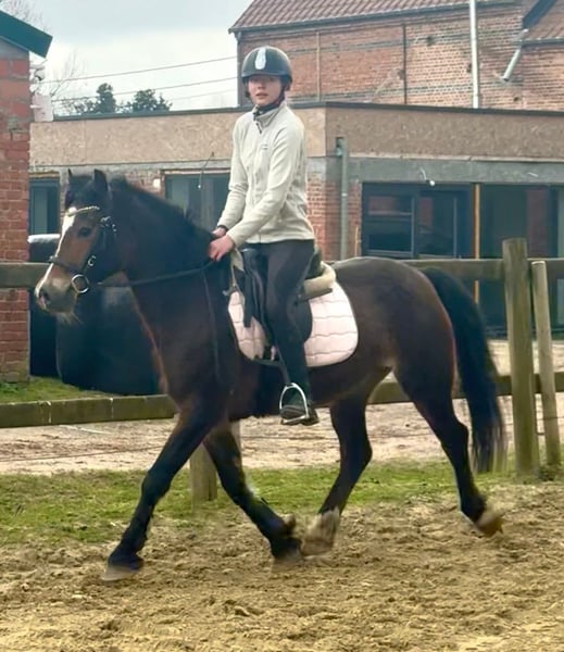 Meet Lady 💕 Een lieve merrie van +\~ 142cm Ze is een Welsh pony cob met stamboom V: Lianmorlais Reagon Vm: Fronarth Ginola We zoek iemand die graag samen met haar, haar verjaardag wil vieren 🎂 Ze verjaart nl volgende week 🥳 Dan wordt ze 6j. En natuurlijk de volgende jaren ook. Ze is een echte allrounder. Ze is voorheen altijd gereden geweest in de koets - enkelspan. Bij ons wordt ze gereden onder het zadel. Ze leert heel snel. En doet alles heel braaf. Kent 3 gangen. Kan nog wat meer oefening gebruiken. Zolang ze hier staat rijden we ze verder door. Zal niet bokken of steigeren. Zachte lieve pony met rustig eerlijk karakter. We gingen met haar op de baan en naar buiten. Ze is verkeersmak. De eigenaar doet ze weg omdat hij al wat ouder wordt. Kortom: zoek je een brave lieve allround D pony -> she can be yours 💕 ✅Enkelspan - Koets ✅ Bereden ✅ Verkeersmak ✅ Super braaf in omgang ✅ Eerlijk - lief & rustig karakter ✅ Dogproof ✅ Welsh pony - cob met stamboom Bij ons 24/7 buiten in de kudde -