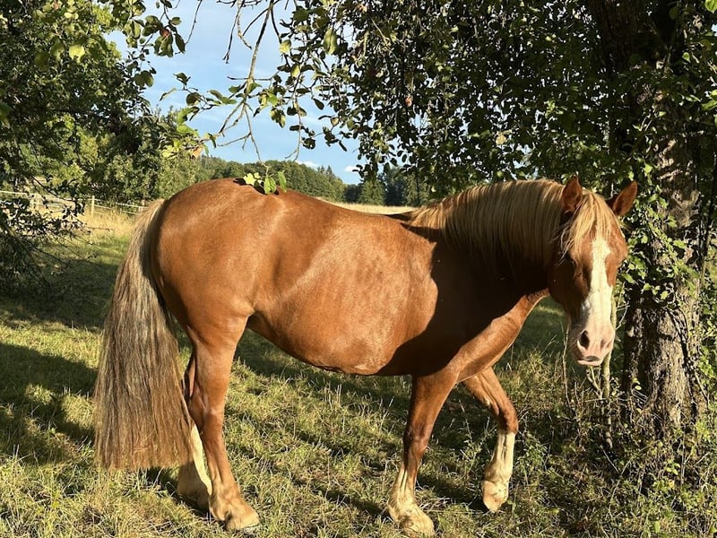 Missy / Clanroy Heulwen is an exceptionally beautiful Welsh Cob D pony. - Height: 148 cm - 8 years old, born in 2018 - Barefoot - Has been living in a paddock for two years but is also familiar with box stalls. Missy is clear-headed, always motivated with good forward drive, and very empathetic, friendly towards people, and loves to cuddle. Visually, she is perfectly built with a striking blaze. She is being sold because, unfortunately, we do not have the time and experience to train and promote her according to her age. She knows the gaits, moves sideways, backwards, can be ridden and lunged, is well-behaved during hoof cleaning and grooming. However, she needs a sensitive person with a lot of experience, as she sometimes tests her limits. Missy quickly understands what is expected of her and always tries to comply. She is unfamiliar with the use of a whip or spurs, and they are not needed at all. She is very eager to move, and you definitely won't have to struggle with her! Missy is suitable for: - Dressage (has been ridden English so far) - Western (due to her broad back and agility) - As a breeding mare Not suitable for: - As a children's pony - As a show jumper She is in excellent health. We have had her regularly vaccinated, dewormed, and her hooves have always been professionally cared for. In the 2 years she has been in my possession, she has never been sick or lame! She comes with some equipment: bridle, side reins/lunge, grooming tools but without a saddle.