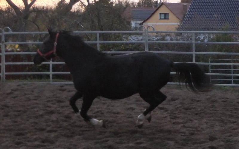 Sehr schöne und durch ihre 4 weißen Beine auffällig gezeichnete Stute. Maja ist geritten auf dem Platz,Halle und bestens im Gelände. Sie ist unkompliziert und einfach zu händeln. Mit ihrem kräftigen Körperbau ist sie auch für größere Reiter geeignet. Ein optimales Wiedereinsteigerpferd, Pferd für Kinder und ältere Leute! Weiterhin ist sie einspännig gefahren. Freizeit-Western-Geländereiten,fahren,Reitschule 8 Jahre, 148cm Bei Interesse bitte anrufen, keine Mail! Für eventuell auftretende Fehler in der Beschreibung gilt keine Gewähr! Tel.: 0173-3843407 Da es sich um ein lebendes Tier handelt, sind dies subjektive Eindrücke des Anbieters und keine zugesicherten Eigenschaften des Tieres! Ständig schöne Fahr-u.Freizeitpferdesowie neue Kutschen verschiedener Modelle preiswert im Angebot. Anschrift Stall: 99628 Buttstädt, Oberwendenstraße 39