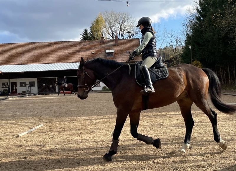 Zum Verkauf steht unser Herzenspferd, ein wunderschöner Westfalenwallach von Cornado NRW und Muttervater Pavarotti van der Helle, geboren im Jahr 2011. Mit einem beeindruckenden Stockmaß von 174 cm und seiner eleganten dunkelbraunen Fellfarbe, sowie seinem kecken Ausdruck zieht er alle Blicke auf sich. Unarten sind ihm fremd und er besticht überall mit seinem verspielten und absolut ehrlichen Wesen. C ist im Springen bis M* gefördert worden, lief die letzten 5 Jahre dann lediglich freizeitmäßig (Lehrgänge, auch große Ausritte inbegriffen). Dieser talentierte Wallach macht einfach Spaß im täglichen Umgang, sein Herz schlägt jedoch für den Springsport. Er eignet sich deshalb beispielsweise wunderbar für den gehobenen Freizeitsport, ist jedoch auch für einen Wiedereinsteiger der ideale Begleiter. Besonders hervorzuheben: Er ist ein absolutes Verlasspferd, super brav im Umgang, möchte beim Springen immer auf die andere Seite, somit ist er auch für jüngere Reiter (keine Anfänger) bestens geeignet. Auch Kinderreiten ist mit ihm keim Thema, da er unerschrocken und jederzeit gut händelbar ist. Er ist gut ausgebildet, brav im Umgang und hat ein einwandfreies Wesen. Er zeigt sich stets motiviert und lernwillig. Ob in der Halle oder im Gelände (allein oder in der Gruppe), er ist ein zuverlässiger Partner. ➡️ Wichtiger Hinweis: An den Fesseln hinten hat er Gallen, welche ihn jedoch in keinster Weise beeinträchtigen. Weitere Option: Gerne würden wir wegen Aufgabe des Reitsports sein Equipment mit verkaufen. Details hierzu dann gerne im persönlichen Gespräch. Da C bei uns ein Familienmitglied ist, durfte er immer in Ställen leben, welche das Pferdewohl an erste Stelle setzen. Aktuell steht er ebenfalls im Offenstall mit gutem Heu und reichlich Koppelgang und wir geben ihn nur umständehalber in beste Hände (mit Schutzvertrag). Für weitere Informationen oder einen Besichtigungstermin stehen wir Ihnen gerne zur Verfügung. Wir freuen uns auf Ihre Nachricht!