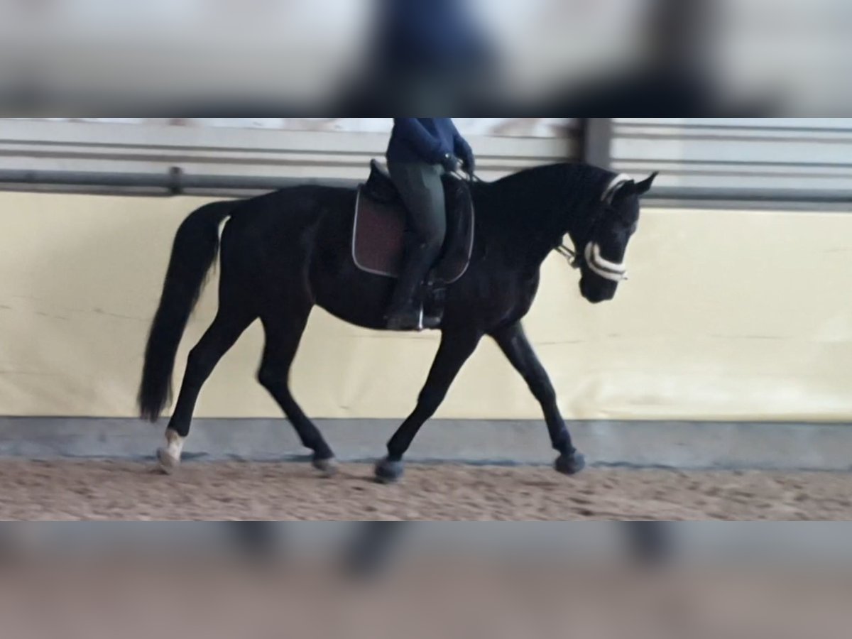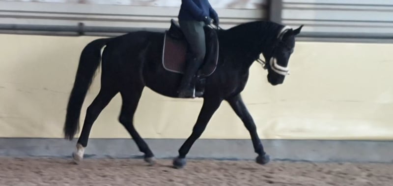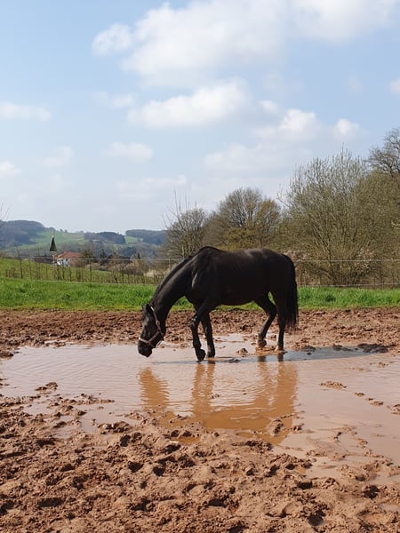 Zum Verkauf steht ein lackschwarzer, sympathischer Wallach im besten Alter Abstammung: Vater Totilas Mutter Goldlack Geb. 29.5.2011 Zuchtgebiet Westfale Größe ca 1,69 m Toto Black ist im Umgang stets freundlich und seinem Menschen zugewand. Er ist sitzbequem in allen Grundgangarten und zeigt viel Bewegungsfreude. Ausbildungsstand bei meinem Erwerb gutes A-Niveau, Dressur, von mir nur freizeitmäßig geritten. Bietet Potential zur weiteren Förderung. Ob unter dem Sattel, an der Longe oder bei der Bodenarbeit, er zeigt sich immer leistungsbereit und motiviert. Toto ist gut sozialisiert und verträglich, auch in Herdenhaltung. Aktuell 4-fach beschlagen. Regelmäßig geimpft und entwurmt. Schmiede- und verladefromm.