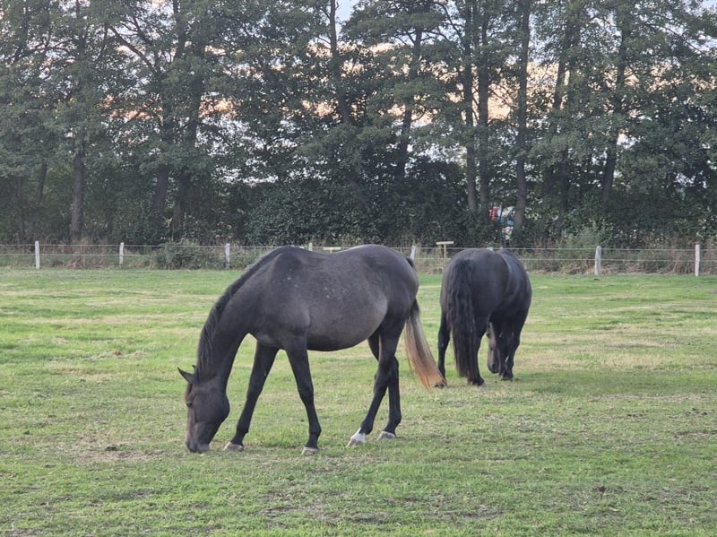 Mit viel Bedacht biete ich einen sehr sympathischen, noch ungerittenen Nachkommen von Aviador zum Verkauf an, der durch sein ausgeglichenes Wesen, seine Lernbereitschaft und seine schöne Ausstrahlung überzeugt. Er wird im Juni 3 Jahre alt und ist hier bei uns geboren und aufgewachsen. Er durfte bisher in Ruhe und mit viel Zeit jung sein, was sich heute in seinem klaren Kopf und seiner Gelassenheit widerspiegelt. Entsprechend ist er noch nicht geritten, dafür aber sehr gut und altersgerecht vorbereitet auf alles, was nun Schritt für Schritt kommen darf. Im täglichen Umgang zeigt er sich freundlich, aufmerksam und menschenbezogen. Er kennt bereits viele Alltagssituationen und ist entsprechend abgeklärt und unerschrocken: • anlongiert • kennt Bodenarbeit, Decken etc. • schmiede- und verladefromm • kennt Kinder jeden Alters • ist vertraut mit Hunden, Katzen, Hühnern und Schafen Er ist in einer gemischten Herde aufgewachsen und dadurch sehr gut sozialisiert, respektvoll im Umgang mit anderen Pferden und angenehm im täglichen Handling. 🔹 Abstammung: Aviador x Canstakko 🔹 Alter: wird im Juni 3 Jahre 🔹 Stockmaß: ca. 1,64 cm 🔹 Ausbildungsstand: ungeritten, altersgerecht vorbereitet 🔹 Charakter: ehrlich, ruhig, kooperativ, menschenbezogen In der Bewegung zeigt er sich taktsicher, ausbalanciert und mit schöner natürlicher Bewegungsqualität, sodass er beste Voraussetzungen für den gehobenen Freizeitsport mitbringt. Ein Pferd, das Freude an feiner Arbeit verspricht – ohne Hektik, dafür mit viel Potenzial für eine langjährige Partnerschaft. Gesucht wird ein liebevolles, förderndes Zuhause, in dem er weiter behutsam ausgebildet wird und als das geschätzt wird, was er ist: 👉 ein junger, ehrlicher Partner mit Herz und Perspektive. (Auf den letzten beiden Fotos ist die Mutter zu sehen)