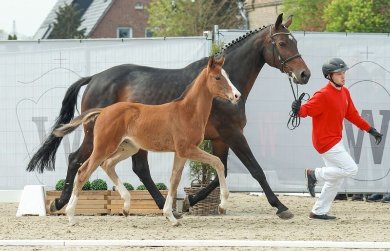 Habsburg is a very smart and strong moving son of High Quality, who is a full brother of the highly successful High Motion. His dam Carlotta has successfully passed her SLP and has already had 4 foals. Habsburg is expected to grow very tall and reach a final height of 1.75+ stm. The granddam Reviera comes from a successful dam line that has produced successful international offspring in dressage and show jumping, including Donna Karacho. Video : https://youtu.be/T3FCV9O4w-g.Weitere Videos on request The details given are non-binding descriptions and do not represent guaranteed characteristics. The seller is not liable for errors, input errors and data transmission errors