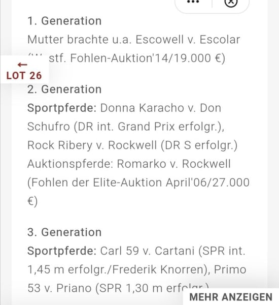 Habsburg ist ein sehr schicker und bewegsstarker Sohn des High Quality, welcher ein Vollbruder des hoch erfolgreichen High Motion ist. Seine Mutter Carlotta hat erfolgreich ihre SLP abgelegt und bereits 4 Fohlen gehabt. Habsburg wird voraussichtlich sehr groß werden und ein Endmass von 1,75+ Stm erreichen. Die Großmutter Reviera stammt aus einer sporterfolgreichen Mutterlinie, die erfolgreiche internationale Nachkommen in Dressur und Springen, u. A. Donna Karacho Video : https://youtu.be/T3FCV9O4w-g.Weitere Videos auf Anfrage Die gemachte Angaben sind unverbindliche Beschreibungen und stellen keine zugesicherten Eigenschaften dar. Der Verkäufer haftet nicht für Irrtümer, Eingabefehler und Datenübermittlungsfehler