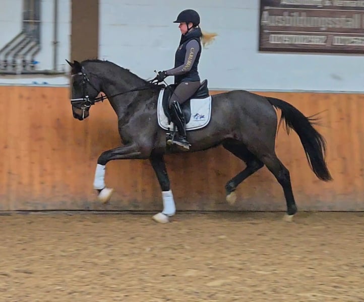 Stylish 4-year-old gelding directly from the breeder This youngster, sired by Total McLaren out of a Rubin Cortes mare, has recently been backed and impresses with excellent basic gaits, good rhythm, solid connection, and a pleasant go. For those looking for a rough diamond at a reasonable price to refine themselves, this is the perfect find. Can be tried in 97285 Röttingen. Please contact by phone at 01797002982. !Vb! €17,500🥕