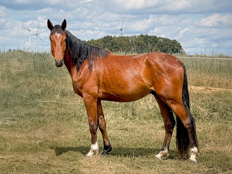 Zum Verkauf steht ein äußerst vielversprechender 4-jähriger brauner Wallach von Eldorado x Claritos. Der großrahmige Wallach (Stockmaß ca. 176 cm) überzeugt durch sein außergewöhnliches Springvermögen, eine hervorragende Technik am Sprung sowie viel Übersicht und Vorsicht. Er präsentiert sich modern im Typ, mit elastischen Bewegungen und einer sehr guten Einstellung zur Arbeit. Altersentsprechend ausgebildet, zeigt er sich rittig, lernwillig und stets motiviert. Er ist direkt einsetzbar in der kommenden Saison und bereit, seine Karriere in Springpferdeprüfungen zu beginnen. Durch seine Qualität und sein Vermögen bietet er eine hervorragende Perspektive für den gehobenen Springsport und ist sowohl für ambitionierte Amateure als auch für Profis hochinteressant.