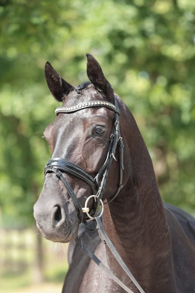 For sale is a 5-year-old black gelding standing 16.8 hh, sired by Barcelo out of Rock Forever. He impresses with good basic gaits, is easy to ride and always responds delicately to the rider’s aids. His temperament is calm, reliable, and fearless, making him straightforward to handle in everyday situations. The gelding is farrier- and loading-friendly and an all-around pleasant partner for sport. Currently, he confidently performs at Prix St. Georges level and is progressing well in his first L-level dressage tests. Please contact us at 0172/7453930 via WhatsApp, phone, or chat if interested.