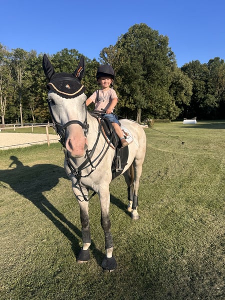 Finley est un hongre amical et un peu réservé, qui aime toujours recevoir de l’attention. Il a bien débuté la saison en concours dans les disciplines du concours complet et du saut d’obstacles. Malheureusement, cela n’a pas continué comme prévu, et il a commencé à s’arrêter. Nous avons récemment découvert une lésion au niveau de l’articulation de la cheville, ce qui explique tout. Il a été traité pour cela, mais le ligament suspenseur a également été affecté, et Finley devrait donc passer l’hiver en étant un peu plus tranquille. C’est pourquoi il est proposé à un prix très inférieur à sa valeur réelle ! Il est très agréable et courageux en balade, même lorsqu’on transporte la voiture ou qu’on sort en extérieur sur la route, cela ne pose aucun problème pour lui. Il va aussi bien seul qu’en groupe. En dressage, il est bien en A et a commencé en L. À 4 ans, il s’est classé dans une épreuve de dressage pour jeunes chevaux en classe A. Je pense qu’il pourrait très bien s’épanouir dans ces disciplines aussi. Il possède de belles allures amples et elastiques. Il participe également très bien au travail à pied. Dès qu’il comprend ce qu’on attend de lui, il s’engage avec enthousiasme pour accomplir ses tâches. Actuellement, il est en pâture avec une jument et un hongre. Il s’entend bien avec les deux. En raison de son jeune âge et de son tempérament plutôt joyeux (lorsqu’il se sent sous-stimulé), je ne le recommanderais pas comme cheval pour débutants. Place avant le prix, sans aucun doute !