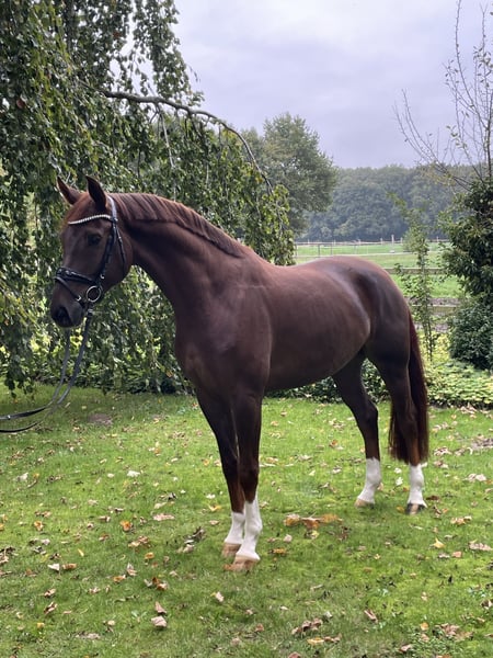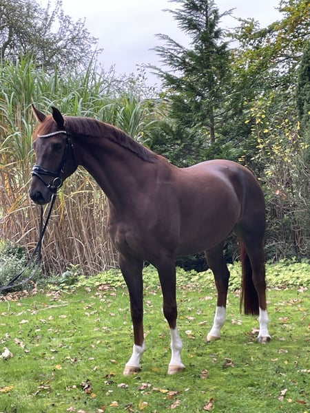 Zum Verkauf steht dieser 5 jährige Wallach vom Fidertanz aus einer Florestan I Mutter. Bei uns gezogen und aufgewachsen, ist er schonen Angeritten worden und hat dieses Jahr ein bisschen Turnierluft geschnuppert, wobei er sich sehr anständig, übersichtlich und unkompliziert zeigte. Seine ruhige, gleichmäßige Anlehnung verleiht der/dem Reiter/in in Kombination mit seiner Sitzbequemlichkeit ein tolles Reitgefühl. Ausgestattet mit drei guten Grundgangarten und einem hervorragenden Charakter ist er sicherlich ein toller Partner sowohl für Umsteiger, Amateure sowie für den ambitionierten Turniersport. Guter TÜV . Bei Fragen melden sie sich gerne und bitte ausschließlich telefonisch unter: 0170 7741957.