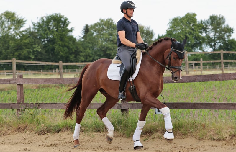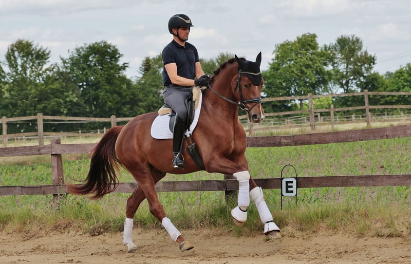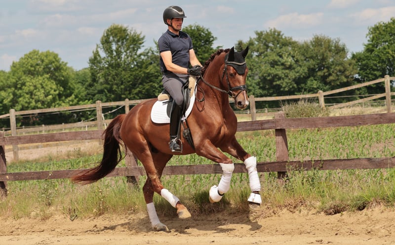 Der Dunkelfuchs besticht durch sein ansprechendes Erscheinungsbild und seine drei guten Grundgangarten. Als vielversprechendes Nachwuchspferd eignet er sich ideal für ambitionierte Reiter, die Wert auf Qualität und Charakter legen. Der Wallach ist bereits erfolgreich in Dressurpferdeprüfungen vorgestellt worden. Ein echtes Potenzialpferd für den gehobenen Dressurbereich, das mit der richtigen Förderung noch weiter aufblühen wird. Bei Interesse freuen wir uns auf Ihre Kontaktaufnahme.