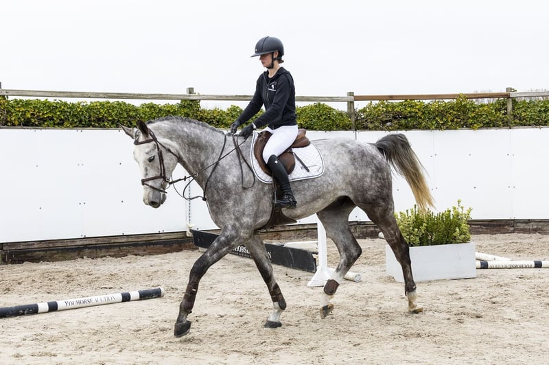 Impressive grey with enormous scope. About one year under saddle and has jumped a 1.00m course, always ridden by an amateur. Has a big canter and is easy to ride. A big, eye-catching horse. Sire El Barone 111 Z – 1.60m level. Top sire from the line of Emerald van ’t Ruytershof with offspring at the highest level. Dam Corella – no sport results. Damline Granddam Lili Marlen – 1.60m. From this line come: Qingluan – 1.40m CW Carlito – 1.35m Additionally multiple horses with international sport influence. Approved stallions: Christian – 1.60m, Cartani – 1.60m.