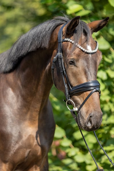 Deze grootgebouwde ruin heeft drie goede basisgangen, waarbij de stap bijzonder opvalt. Hij is onbevreesd en wil alles goed doen voor zijn ruiter. Omdat hij van driejarige leeftijd tot nu toe veel heeft meegemaakt en zich heeft ontwikkeld, hebben we hem de tijd gegeven die hij nodig had. Hij beschikt over een zeer goede basisopleiding en is nu klaar om verder ontwikkeld te worden. Hij is gewend om dagelijks lange tijd buiten te zijn, graag ook samen met andere paarden in de kudde. Een video maken we volgende week. Ik kijk uit naar uw aanvraag.