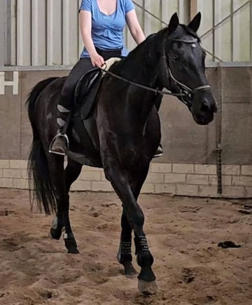 Od ponad 40 lat jestem właścicielką koni i w tym momencie mojego życia nadszedł czas, aby odpuścić wszystkie obowiązki i wyzwania związane z własnym koniem. Po długim i przemyślanym namyśle zdecydowałam się na sprzedaż mojego wymarzonego, idealnego konia. Z ciężkim sercem oddaję mojego wyjątkowego ogiera w troskliwe, wspierające i kompetentne ręce. Mojego ogiera kupiłam w wieku pół roku i od tego czasu wychowałam go z największą starannością, pełną miłości i cierpliwości. W wieku prawie 5 lat (ur. 03/21) ma obecnie około 179 cm wzrostu i nadal rośnie, rozwijając się fizycznie. Ze swoim wzrostem jest idealny dla wysokich jeźdźców. Stoi na poprawnym fundamencie, posiada bardzo dobre chody, a jego podstawowe ruchy są piękne, przestrzenne, pełne energii, elastyczne i harmonijne, a temperament jest bardzo przyjemny. Mój ogier to dobrze wychowany, absolutnie posłuszny, klarowny umysłowo, niezawodny koń, zawsze otwarty na kontakt z człowiekiem, z dużym potencjałem. Ma wszystko, czego można oczekiwać od młodego konia. Jest całkowicie bezproblemowy w obsłudze i podczas pracy. Doskonale reaguje na głos, zawsze współpracuje i chce zrobić wszystko poprawnie. Uczy się niesamowicie szybko, jest bardzo inteligentny. W kontaktach i podczas jazdy jest zazwyczaj spokojny i opanowany. To koń z relaksującej, zrelaksowanej kategorii. Jest bardzo ciekawski i podchodzi do nowości z dużą spokojem. Uwielbia głaskanie i jest zawsze uprzejmy i uważny wobec człowieka. Zna wszystko, co powinien znać młody koń, zarówno w obsłudze, jak i w pracy z ziemi. Zawsze podchodziłam do jego szkolenia delikatnie, dając mu dużo czasu, zanim zacząłam np. z lonżowaniem. Zna pracę na ziemi, ręczną, spacery i regularne treningi odstraszające, które bardzo mu się podobają. Został nauczony spokojnego lonżowania we wszystkich chodach. W hali jest zazwyczaj spokojny i opanowany także w towarzystwie innych koni i pozostaje posłuszny swojemu jeźdźcowi. Obecnie jest delikatnie wprowadzany do jazdy, wszystko jest dostosowane do jego potrzeb, w małych, starannie dobranych jednostkach. Chce czuć radość z noszenia jeźdźca. Robi to wszystko dobrze, nawet po dłuższej przerwie. Niczego nie zapomina i chętnie wykonuje polecenia. Obecnie znajduje się na początku swojej szkoleniowej drogi i potrzebuje jeźdźca, który cierpliwie i z miłością przekaże mu podstawową wiedzę oraz będzie go dalej rozwijał zgodnie z jego talentami. Ze względu na ograniczony czas, jest obecnie rzadko pod siodłem, ponieważ musimy być we dwójkę. Staramy się jednak jeździć trzy razy w tygodniu, a w pozostałe dni jest zajęty różnorodnymi ćwiczeniami. Ponieważ planowałam go także używać jako konia zaprzęgowego, jest już zaznajomiony z uprzężą i zaprzęgiem. Chętnie ciągnie wóz lub gniotę do hali. Niestety, po zmianie stajni nie udało się tego dalej rozwijać. Zawsze wychowałam go z troską i rozsądkiem, bo jest moim przyjacielem i partnerem, którego chciałam cieszyć przez długi czas. Wychowałam go z największą starannością i miłością i chcę, aby był nadal traktowany z takim samym szacunkiem. Regularnie wykonuję pracę na ziemi, treningi odstraszające i spacery, aby stał się niezawodnym partnerem na terenach otwartych. Potrafi samodzielnie wjechać do traileru i jest bardzo posłuszny wobec kowala. Ma bardzo dobre kopyta, więc nie będzie potrzebował podków. W październiku przeprowadziliśmy się z małej, prywatnej stajni do dużego ośrodka z lepszymi możliwościami treningowymi i obecnie przyzwyczaja się do nowego otoczenia, w tym do systemu prowadzenia i codziennych obowiązków. Radzi sobie z tym bez problemu. Zna zarówno boksy z wybiegiem, jak i boksy typu paddock, a także cały dzień na pastwisku, także latem. Bardzo dobrze odnajduje się w wolnym wybiegu lub stajni aktywnej, ponieważ bez problemu integruje się z inną grupą koni. W relacjach z innymi końmi jest zawsze uprzejmy, nigdy nie miał problemów w stadzie, zajmuje środkową pozycję i potrafi się dobrze dostosować. Mój ogier pochodzi z doskonałej linii rodowodowej: O jego ojcu, Selectricu (kary kohlfuchs, wzrost 173 cm, syn trzykrotnego mistrza świata Sezuana), pisze Państwowa Stadnina Westfalii: SELECTRIC to konik, który przyciąga uwagę. Nie tylko dzięki pięknemu umaszczeniu i urokliwemu wyglądowi, ale także dzięki swojej energii i elastyczności. W 2018 roku podczas 14-dniowego testu w Adelheidsdorf uzyskał ocenę 8,49 w ujeździe, kończąc na trzecim miejscu. Jego niemiecki oceniacz wystawił mu niemal perfekcyjną ocenę 9,75. Zawsze prezentuje się z energią, pełnym gracją, elastycznością i harmonią. W sezonie 2020 zakwalifikował się do udziału w Mistrzostwach Federalnych. W 2019 roku zwyciężył w konkursie koni sportowych i uzyskał łączną ocenę 8,19 w próbie ujeżdżeniowej. Przyszedł z pełną rodowodową linią, w tym z siostrami pełnymi, które są matkami dwukrotnie zarejestrowanych ogierów i odnoszą sukcesy w ujeżdżeniu. Prababcia, St.Pr.St. Walhalla, uzyskała doskonałą ocenę 8,28 w próbie wytrzymałości. Matka, St.Pr.St. Andorra, jest matką zarejestrowanego ogiera Montserrat oraz wielu odnoszących sukcesy koni skokowych. Matka, o wzroście 168 cm, pochodzi od Rubitano i odnosiła sukcesy w ujeżdżeniu do poziomu klasy L. Rubitano to syn Rubin-Royal, reprezentujący starą linię Oldenburską, wywodzącą się z elitarnej klaczy Rumirell, z potomstwem Rohdiamanta, z którego wywodzi się aż sześć zarejestrowanych pełnych braci. Rubin Royal startował w konkursach Grand Prix w Dortmundu, Bremie, Münster, Bernie (SUI), Akwizgranie, Turynie (ITA), Donaueschingen, Monachium i Stuttgarcie. Wydał na świat ponad 25 zarejestrowanych ogierów i wiele topowych koni (z łączną sumą nagród przekraczającą milion euro). Przez pięć lat plasował się w czołówce światowych rep