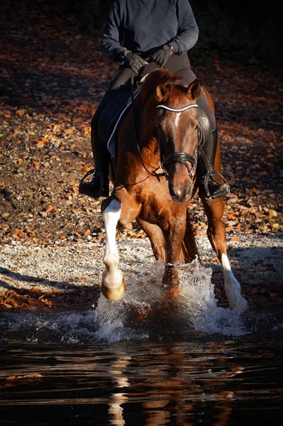Samba is a 4.5-year-old Westphalian riding horse, approximately 185 cm, sired by Selectric, Sezuan, Zack, De Kooning x Laureus, Feuerschein II. *Samba* is an exceptional horse. A stunning, well-trained gelding with three excellent gaits and a fantastic character. He handles everything with ease, whether it’s indoor or outdoor work, riding alone or in a group. He’s used to being ridden with a halter or simply cantering over stubble fields with a pad. Samba is comfortable in water and has already jumped small fences. He is very versatile and well-schooled. Super calm and brave, he handles any desensitization training effortlessly. He’s familiar with walking through flutter tapes, plastic bottles, etc.!!! BE SURE TO WATCH HIS VIDEO!!! In handling, he is affectionate, sweet, and very people-oriented. He comes with a current large veterinary check. A current video can be viewed here in the listing or via the following link: https://www.youtube.com/watch?v=yTkk4GQFf3Y Pferdehandlung Dederichs – Ihr Partner für den Pferdekauf Kontakt & Erreichbarkeit: Anfragen bitte ausschließlich telefonisch unter 0173/9792139 Montag – Freitag: 09:00 – 18:00 Uhr Samstag: 09:00 – 15:00 Uhr Sonntag: Ruhetag Folgen Sie uns auf Social Media! Erleben Sie unseren Alltag mit den Verkaufspferden auf Instagram, TikTok & Facebook unter Pferdehandlung Dederichs Rabatt: Bei sofortiger Mitnahme Ihres neuen Traumpferdes erhalten Sie zwischen 5 % und 10 % Rabatt. Probereiten & Vorführen: • Probereiten: 30 € pro Pferd (max. 2 Reiter), Betrag wird beim Kauf angerechnet • Feiertage: Proberitt 50 € • Vorführung durch unsere Bereiter: 25 € pro Pferd (Vorreiten, Bodenarbeit etc.) Ankaufsuntersuchung & Transport: • Viele unserer Pferde besitzen bereits eine AKU • Sie können selbstverständlich Ihren eigenen Tierarzt mitbringen • Gerne organisieren wir eine Untersuchung • Wir unterstützen Sie auch gerne beim Transport ins neue Zuhause Weitere Verkaufspferde: In unserem Stall stehen weitere Verkaufspferde, die noch nicht online sind. Falls Ihr Traumpferd noch nicht dabei ist, zögern Sie nicht, uns zu kontaktieren. Wichtige Hinweise: • Stockmaß-Angaben sind geschätzt und nicht exakt nachgemessen • Alle Beschreibungen sind subjektive Einschätzungen des Verkäufers und keine zugesicherten Eigenschaften Weitere Informationen finden Sie unter: www.Pferdehandlung-Dederichs.de