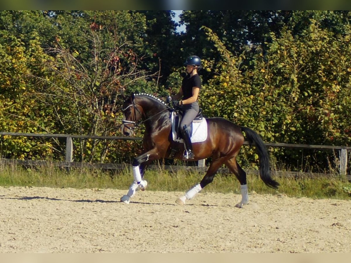 Dinero, malgré les grandes traces laissées par ses proches, n’a pas besoin d’un grand spectacle pour impressionner. Lors de sa première épreuve de dressage pour jeunes chevaux, il a remporté la victoire avec une grande assurance, répondant ainsi immédiatement à des attentes très élevées. Le gagnant de la série S, Dancier Gold, ainsi que ses trois frères et sœurs complets, également performants en classe S, prédisposent ce charmant cheval, plein de caractère, à atteindre les plus hauts niveaux. Sur le plan du tempérament, il est clairement influencé par Dancier Gold. Son attitude douce, son comportement réservé et sa constante volonté de performer sont typiques de son père et de son fils. Sa mère, la gagnante de concours de chevaux de selle, Fire and Ice, lui transmet puissance, souplesse et légèreté. En plus, il hérite de ses deux parents un excellent sens de l’équilibre et une bonne mâchoire. Dans l’ensemble, il représente le cheval de dressage parfait, qui se déplace avec aisance et sans aucune tension artificielle, comme une plume.