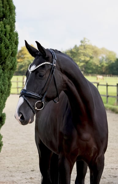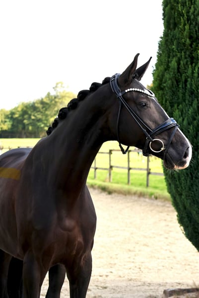 Ten pięcioletni wałach to absolutny okaz. Prezentuje się długonogi w czarnej sierści i pięknym wyglądzie. Mimo że ma już 5 lat, dopiero od niedawna jest pod siodłem. Ostrożny, ale grzeczny, przeszedł swoje pierwsze okrążenia na ujeżdżalni. To wspaniałe koni do szkolenia, jednak nie jest odpowiedni dla początkujących. Jest w posiadaniu hodowcy. Chętnie prześlemy Państwu wideo.