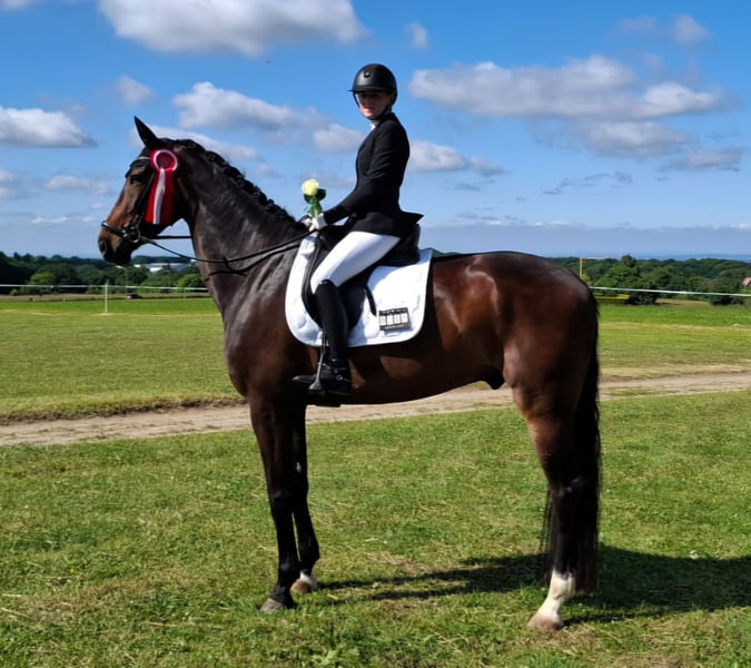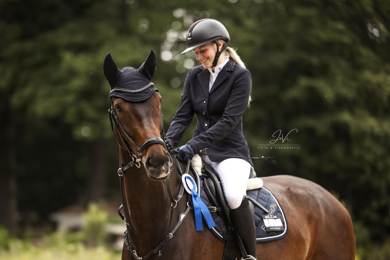 Elegant Westphalian gelding, born in 2019, with a dark brown coat. Standing at 174 cm (17.1 hh), he has an impressive presence and is ideally suited for dressage. He is also suitable for eventing, having achieved placements in dressage A and A-level show jumping. He is confident across varied terrain. This versatile gelding impresses with his friendly nature, willingness to learn, and solid basic training. Perfect for ambitious, strong riders seeking a reliable horse with potential. For more information or to arrange a viewing, please contact us. We do not support riding tourism; only serious inquiries, please!
