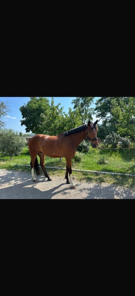In vendita un bellissimo castrone baio di 6 anni. Jonny è un cavallo molto talentuoso, con un ottimo GGA per il grande quadrato. Già a 5 anni ha dimostrato le sue qualità in gara e ha vinto due volte le prove per giovani cavalli! È stato iniziato più tardi e ha lavorato molto a terra. È un cavallo molto sensibile e viene venduto anche a un cavaliere sensibile che possa continuare a svilupparlo sportivamente. Non è un cavallo da tempo libero né adatto ai principianti! Ha già imparato i esercizi di versatili, sia in trotto che in galoppo, naturalmente a livello di cavalli giovani. Il TÜV può essere effettuato su richiesta, a spese dell'acquirente. Il TÜV del 2025 era senza rilevazioni! Si prega di contattare solo persone seriamente interessate!!! Video su richiesta! Email o WhatsApp La prova di monta costa 50€!!! Si trova in Austria, vicino a Vienna.