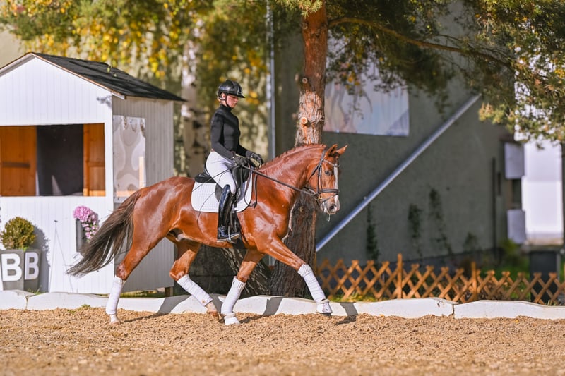 Oferuję na sprzedaż piękniego i bardzo eleganckiego wałacha z Westfalii, urodzonego w 2019 roku. Koń ten posiada znakomity potencjał sportowy. Jest wytrenowany na poziom L (przyjęcie nóg, łatwe zmiany, shoulder-in itp.), z już rozwiniętymi elementami w kierunku poziomów M/S. W sezonie 2025 startował w zawodach, osiągając spójne i pewne wyniki. Rodowód: - Ojciec: Beau Dream (Benetton Dream) - Matka: po Prestige VDL Jest odpowiedni dla ambitnego jeźdźca, juniora lub amatora, poszukującego utalentowanego partnera sportowego z perspektywą na wyższe poziomy. Wykazuje naturalny talent do kolekcji, w tym piaff i passage. W celu uzyskania dodatkowych informacji lub umówienia się na jazdę próbną, proszę o kontakt.