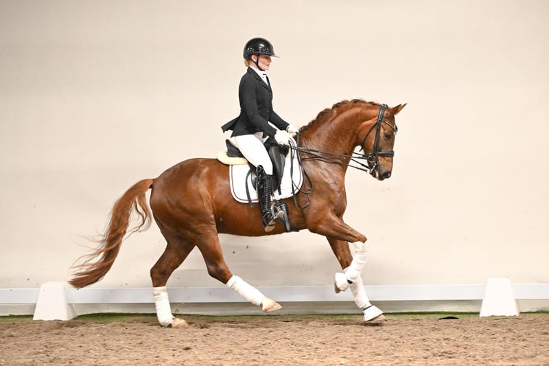 Fly High is a seven-year-old gelding full of charm, willingness to perform, and elasticity. He has already been successfully presented in Dressage M competitions and is showing promising progress in higher-level movements during training. His motivation, pleasant temperament, and exemplary attitude make him a partner who brings joy to every rider. Fly High is attentive, eager to learn, and easy to ride—a horse that approaches new challenges with enthusiasm. His pedigree is equally impressive: his sire, Fürst Samarant, was one of the most sought-after premium stallions at the NRW main licensing. He completed his four-year-old stallion performance test in Münster-Handorf as the top four-year-old dressage stallion in Germany, earning top scores of 9.0 for canter, walk, and rideability. Today, he competes successfully up to Intermediaire I and impresses not only in sport but also as a sire. The dam’s sire, Fleurop, a proven Westphalian state stallion from the Florestan I x Weltruf – Frühlingstraum II line, completes Fly High’s pedigree. He is known for elasticity, willingness to perform, and excellent gaits—qualities that Fly High embodies in outstanding fashion. Fly High combines everything one could wish for in a modern sport horse: rideability, motivation, elasticity, and a strong pedigree. A talented partner for ambitious riders, equally suited for a successful competition career and the development of higher-level movements.