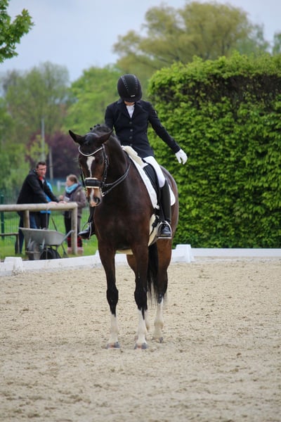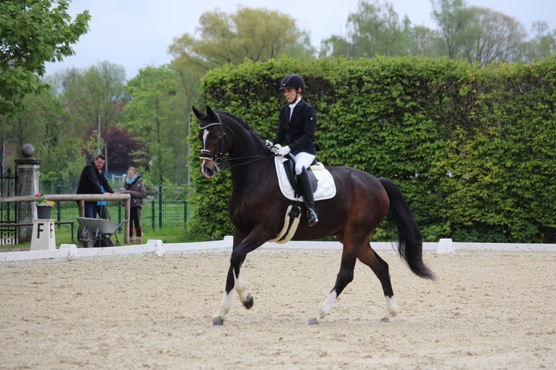 Wij zoeken voor onze Leo een nieuw 5-sterren thuis. Leo heeft zeer mooie elastische gangen, die hem tot seriewinnaar in de dressuurklasse L en M hebben gemaakt. Ook in reguliere dressuurproeven heeft hij overwinningen behaald tot en met klasse M* en plaatsingen tot M**. Hij springt ook graag, maar is bij ons slechts af en toe over een paar gymnastieksprongen gereden. Ook in het terrein zijn we met hem geweest. Hij kent opstaltoernooien en toernooien "vanuit de trailer". Inladen en trailer rijden, evenals de smid en dierenarts, gaat allemaal absoluut probleemloos. Hij staat momenteel halftijds op de wei en heeft een stal met paddock - hij komt altijd meteen goed overeen met alle paarden en zoekt ook altijd contact. Onze hond mag op hem springen en zelfs de wortels uit zijn mond stelen. Dat laat hij allemaal toe. MAAR: Hij is gewoon moeilijk te rijden... Hoe meer kracht hij krijgt en hoe meer paard hij wordt, hoe minder ik (1,61 m klein) het voor elkaar krijg om met hem om te gaan. We geloven dat hij met een ruiter die fysiek beter bij hem past, zeker nog veel kan bereiken - maar ik moet toegeven dat ik dat niet zal zijn... We verkopen absoluut niet aan een beginner. Ook als paard voor een kind of een jongere is hij niet geschikt. We zoeken iemand die waardeert wat voor een lieve, mooie kerel hij is en die zich in staat acht om een moeilijke weg te bewandelen, omdat Leo je telkens weer nieuwe raadsels voorlegt. Enerzijds om de hierboven genoemde redenen en anderzijds omdat hij een bevinding (chip) heeft en een koppelaar is, wordt hij ver onder zijn waarde aangeboden. Het is voor ons belangrijk dat hij een goed thuis krijgt. We kunnen op aanvraag graag een video sturen. Heel belangrijk: We verkopen particulier en kunnen geen service van een handelaar bieden, noch iets als een garantie of waarborg. Daarom graag alle vragen vooraf stellen en alle zorgen uiten. We zullen alles naar beste weten en geweten beantwoorden.