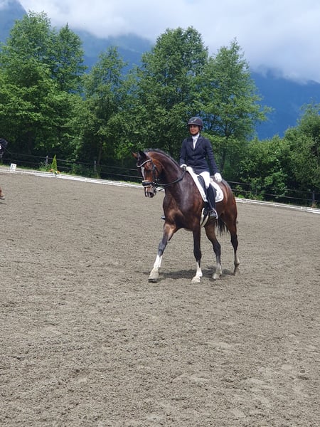 Buscamos un nuevo hogar de 5 estrellas para nuestro Leo. Leo tiene unos movimientos muy bonitos y elásticos, que le han permitido convertirse en un ganador habitual en pruebas de doma clásica de nivel L y M. También ha conseguido victorias en pruebas de doma normal hasta la clase M* y clasificaciones hasta M**. También le gusta saltar, aunque con nosotros solo ha sido montado ocasionalmente en algunos saltos de gimnasia. También hemos salido al campo con él. Conoce los concursos de monta y los torneos "desde el remolque". Cargarlo y transportarlo en el remolque, así como el herrador y el veterinario, son tareas completamente sin problemas. Actualmente pasa medio día en el prado y tiene un establo con paddock; siempre se lleva bien con todos los caballos y busca el contacto. Nuestro perro puede saltar sobre él y hasta robarle las zanahorias de la boca. Todo esto lo acepta con calma. PERO: Es simplemente difícil de montar... Cuanta más fuerza adquiere y más caballo se vuelve, menos puedo manejarlo (mido 1,61 m). Creemos que con un jinete que le quede físicamente mejor, podría lograr mucho más, pero debo reconocer que no seré yo... No vendemos bajo ninguna circunstancia a un principiante. Tampoco es adecuado como caballo para un niño o un joven. Buscamos a alguien que aprecie lo querido y bonito que es y que se atreva a recorrer un camino difícil, ya que Leo siempre plantea nuevos retos. Por una parte, por las razones mencionadas anteriormente y, por otra, porque tiene un diagnóstico (chip) y es coprador, se ofrece a un precio muy por debajo de su valor. Es importante para nosotros que tenga un buen hogar. Podemos enviar un video a petición. Muy importante: Vendemos de forma privada y no podemos ofrecer el servicio de un comerciante, ni ninguna garantía o responsabilidad. Por lo tanto, por favor, hagan todas las preguntas de antemano y expresen cualquier inquietud. Responderemos todo lo mejor que podamos.