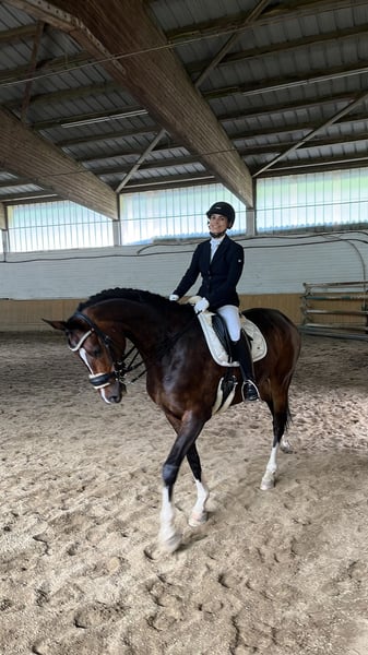 We are looking for a new 5-star home for our Leo. Leo has very beautiful elastic gaits, which have made him a series winner in dressage classes L and M. He has also achieved victories in regular dressage tests up to class M* and placements up to M**. He enjoys jumping as well, but we have only occasionally ridden him over a few gymnastic jumps. We have also taken him out on trails. He is familiar with stable competitions and shows "from the trailer." Loading and trailer riding, as well as farrier and veterinarian visits, are all absolutely problem-free. He currently spends half the day on pasture and has a box with a paddock - he gets along immediately with all horses and always seeks contact. Our dog is allowed to jump on him and even steal carrots from his mouth. He tolerates all of this. BUT: He is simply difficult to ride... The more strength he gains and the more horse he becomes, the less I (1.61 m tall) am able to manage him. We believe that with a rider who is physically better suited to him, he can certainly achieve much more - but I must admit that I will not be that rider... We will definitely not sell him to a beginner. He is also not suitable as a horse for a child or a teenager. We are looking for someone who appreciates what a lovely, handsome guy he is and who feels capable of taking on a challenging journey, as Leo continually presents new puzzles. For the reasons mentioned above, and also because he has a diagnosis (chip) and is a cribber, he is being offered well below value. It is important to us that he finds a good home. We can gladly send a video upon request. Very important: We are selling privately and cannot offer the service of a dealer, nor any kind of guarantee or warranty. Therefore, please ask all questions in advance and express any concerns. We will answer everything to the best of our knowledge and belief.