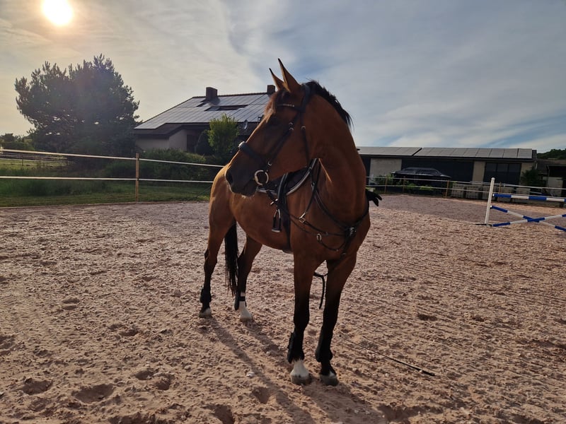 Zum Verkauf steht unser 9-jähriger, brauner, großrahmiger Wallach Fanta. 📌 Stockmaß: 1,78 📌 Abstammung: LDB x Ginsberg II (siehe Eigentumsurkunde) Fanta überzeugt durch: ✔ Sehr gute Rittigkeit – extrem leichtrittig in der Dressur ✔ Zuverlässig und ehrlich im Parcours ✔ Auch für Springeinsteiger geeignet ✔ Absolut klar im Kopf ✔ Keine Turniervorstellung bisher (aus Mangel an Ambitionen, nicht aus mangelndem Können) Durch seine großrahmige Statur ist er auch für größere oder etwas schwerere Reiter sehr gut geeignet. Gleichzeitig kommt auch eine schmächtige Nachwuchsreiterin hervorragend mit ihm zurecht. Ein Pferd, das mit seinem Menschen wachsen möchte – egal ob im ambitionierten Freizeitbereich oder mit sportlicher Perspektive. Videos auf Anfrage
